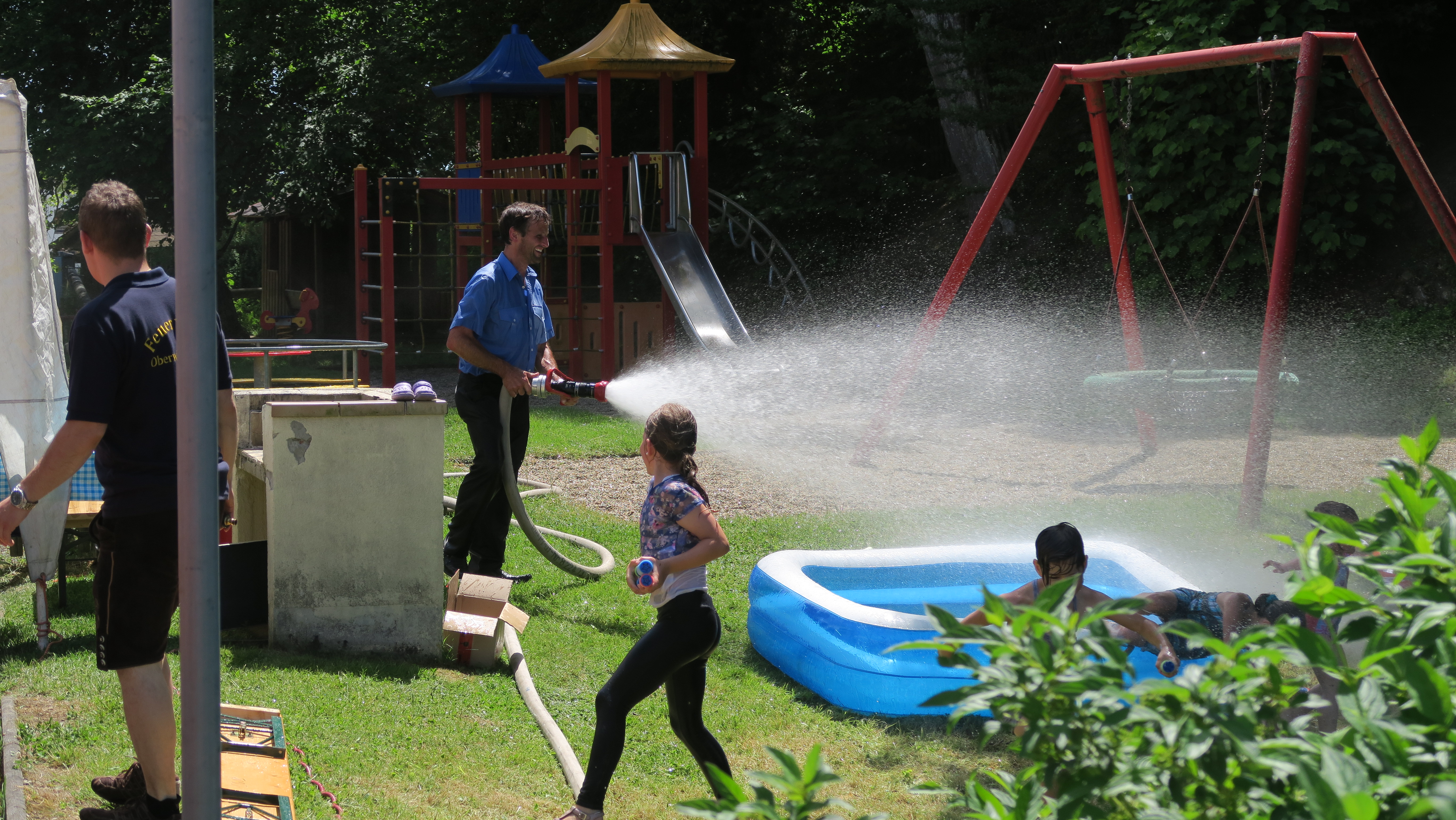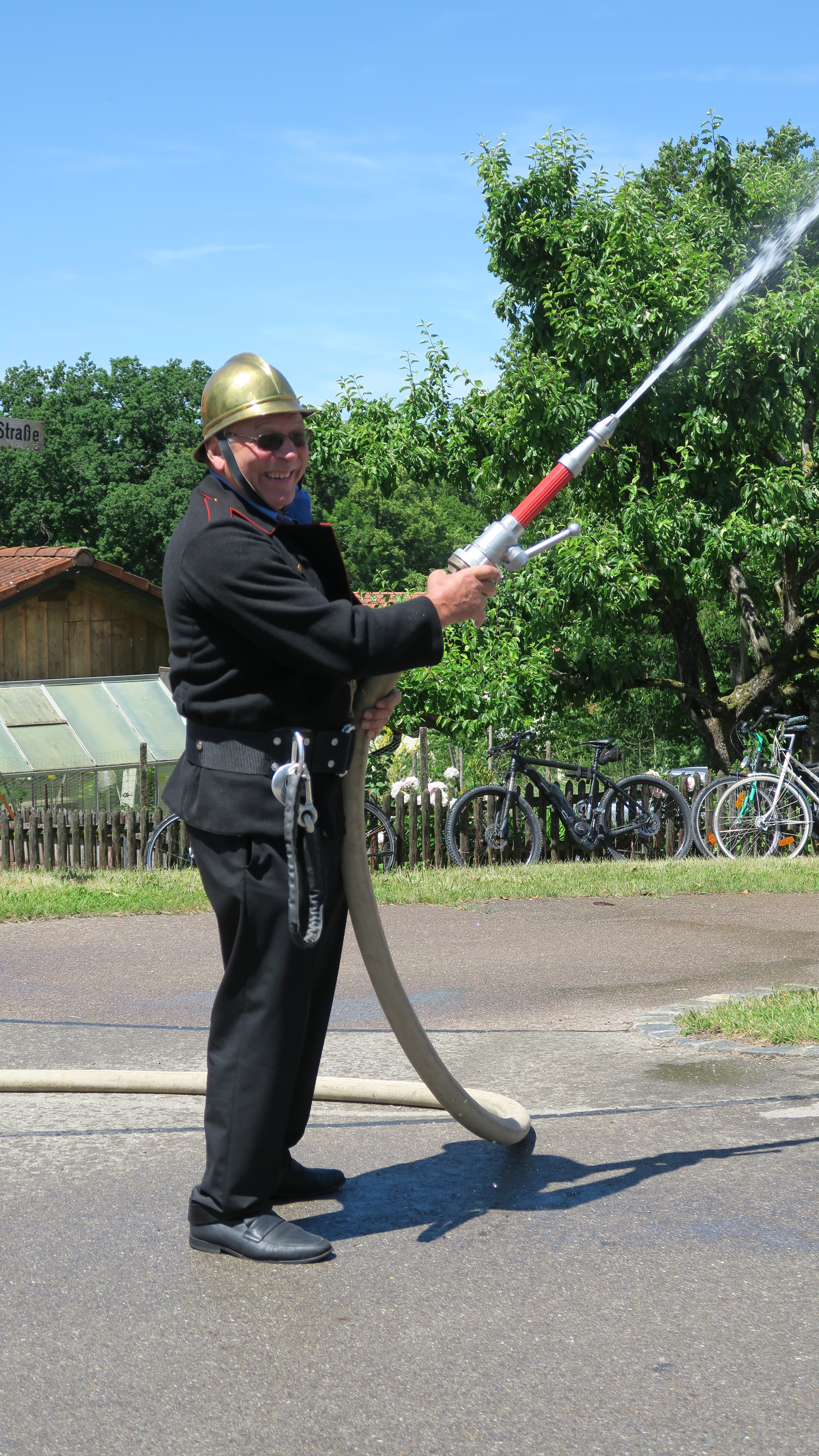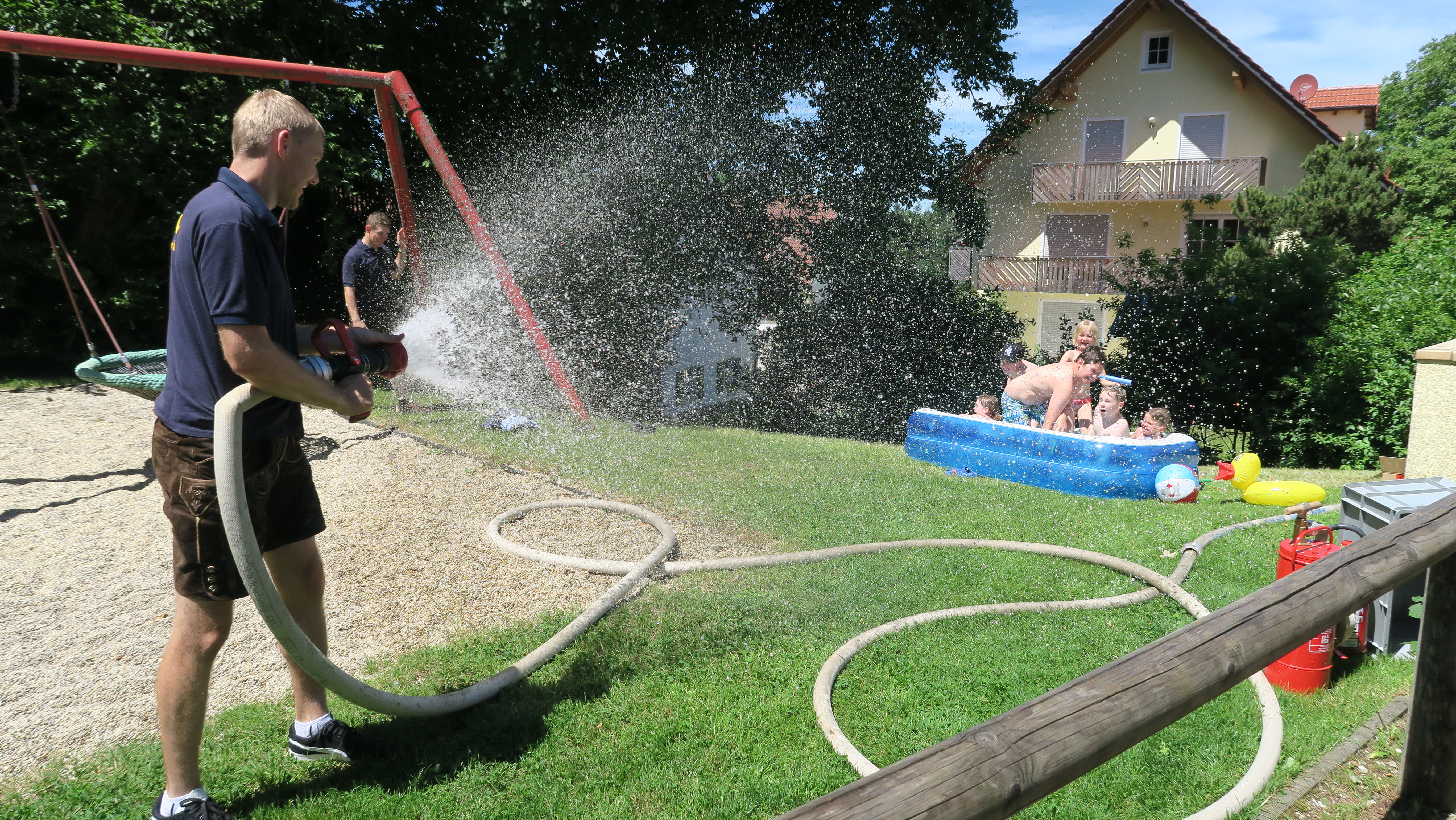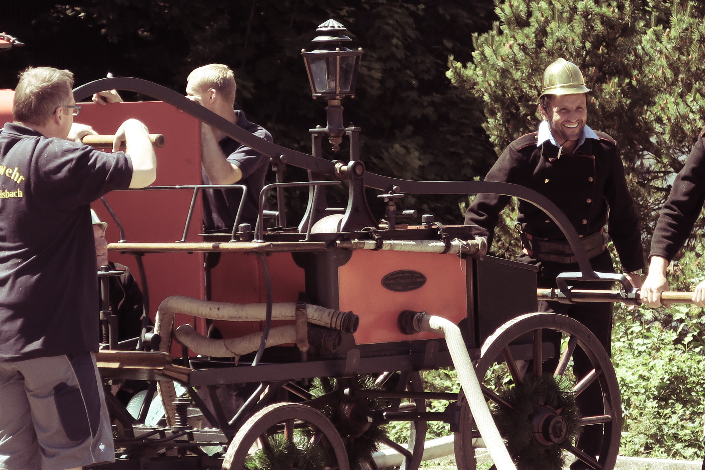 Nach der Segnung durch Herrn Stadtpfarrer Herbert Gugler gab es dann neben der neuen Feuerwehr-Pumpe FOX III auch noch die historische Spritze aus dem Jahr 1890 sowie das Vorgängerfahrzeug einen Tragkraftspritzenanhänger zu besichtigen. Bei einer Vorführung mit der historischen Pumpe wurde dann Geschichte zum Anfassen gelehrt. Neben einer Feuerwehrauswahl durften dann auch noch die Kinder für ordentlich Druck in der Leitung sorgen und kräftig mitpumpen.
