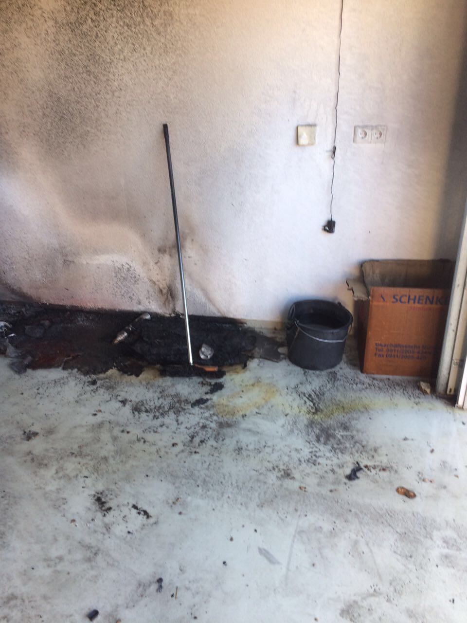 Die Anwohner hatten bereits den Brand gelöscht als die Helfer eintrafen. Zum Glück ist außer einer verrußten Garage nichts Ernstes passiert.