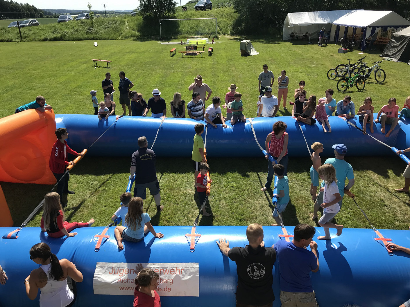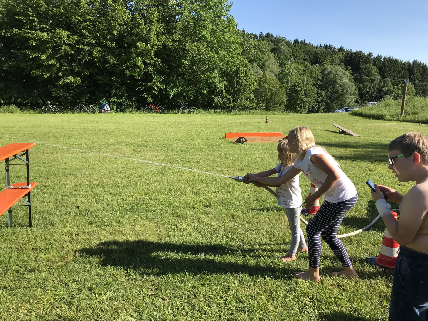 Mittlerweile traditionell veranstaltete die Feuerwehr Oberwittelsbach am vergangenen Pfingstswochenende, bei bestem Wetter, ihr 4. Familienfest im Aichacher Ortsteil. Neben der bestens organisierten Verpflegung wurde für die mehr als 120 Anwesenden viel geboten. In unterschiedlichen Teams konnten Jung und Alt im Lebend-Kicker gegeneinander antreten oder sich zu zweit beim Feuerwehrparkur mit Kübelspritze messen. Nach dem gemeinsamen Abendessen wurde eine Fackelwanderung mit allen Kindern unternommen. Anschließend übernachtete ein Großteil im Zelt, um am nächsten Morgen noch gemeinsam Frühstücken zu können.