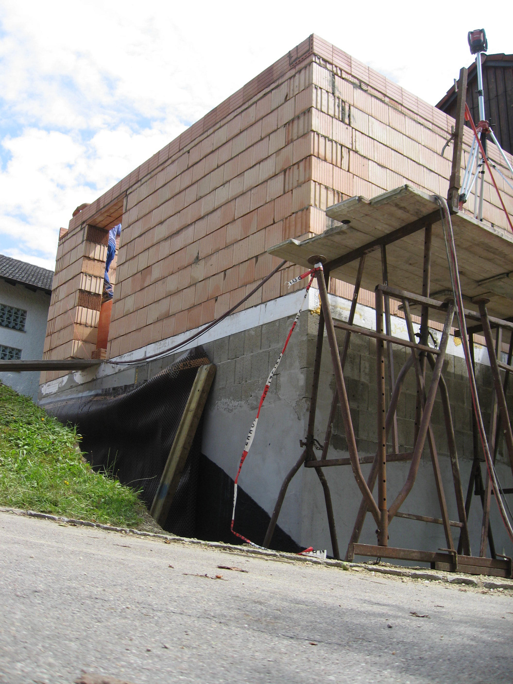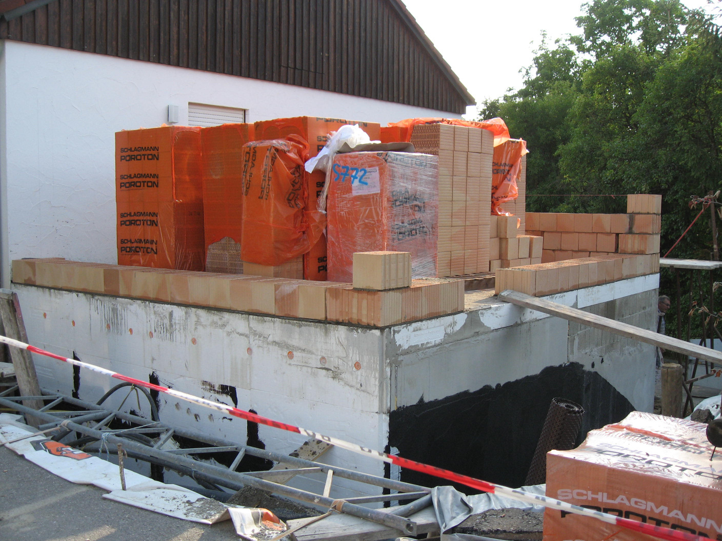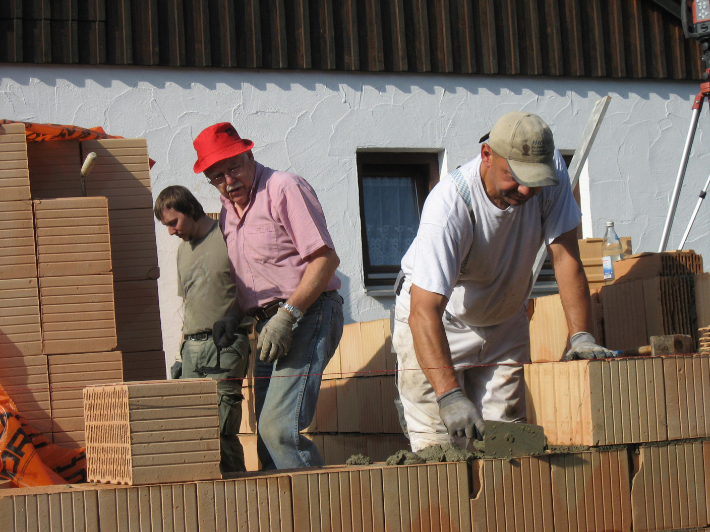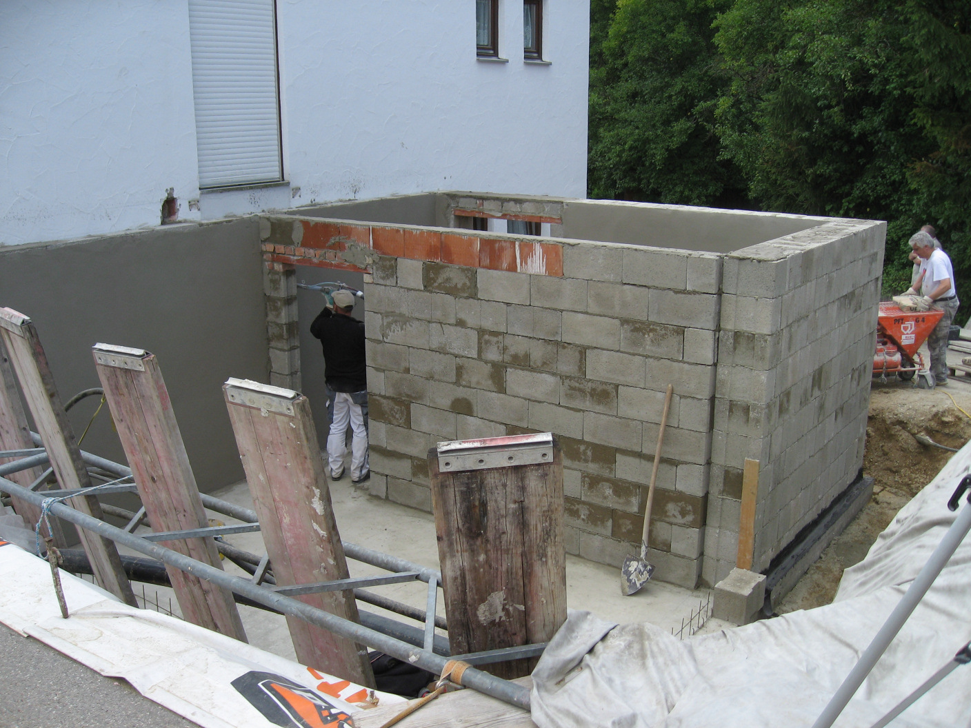 Kaum sind die Hohlblocksteine aufeinander getürmt,