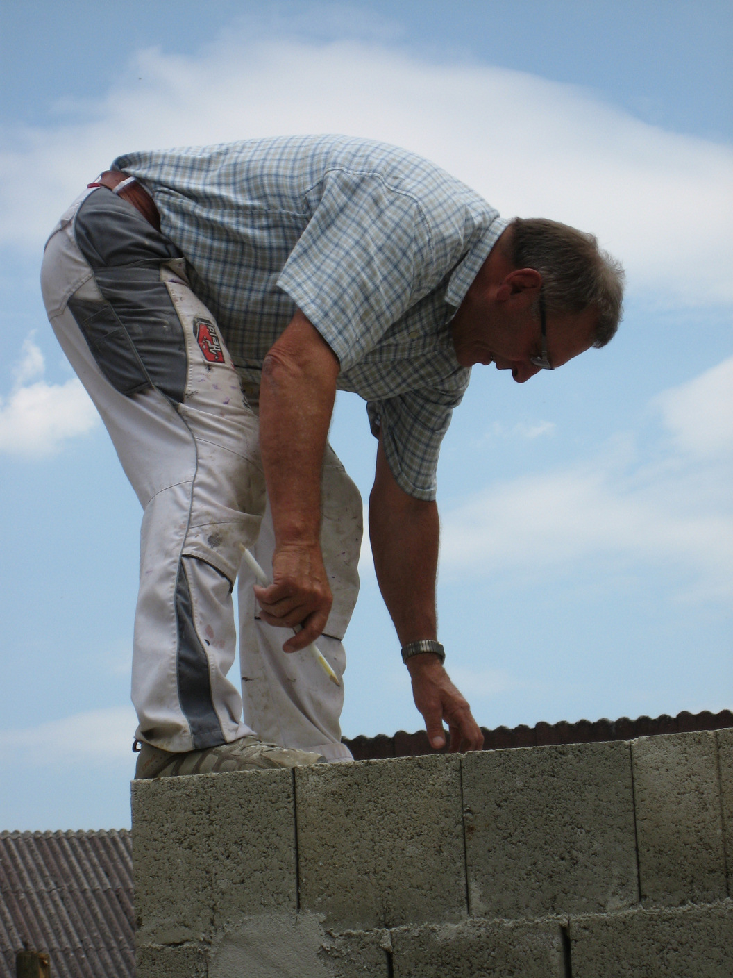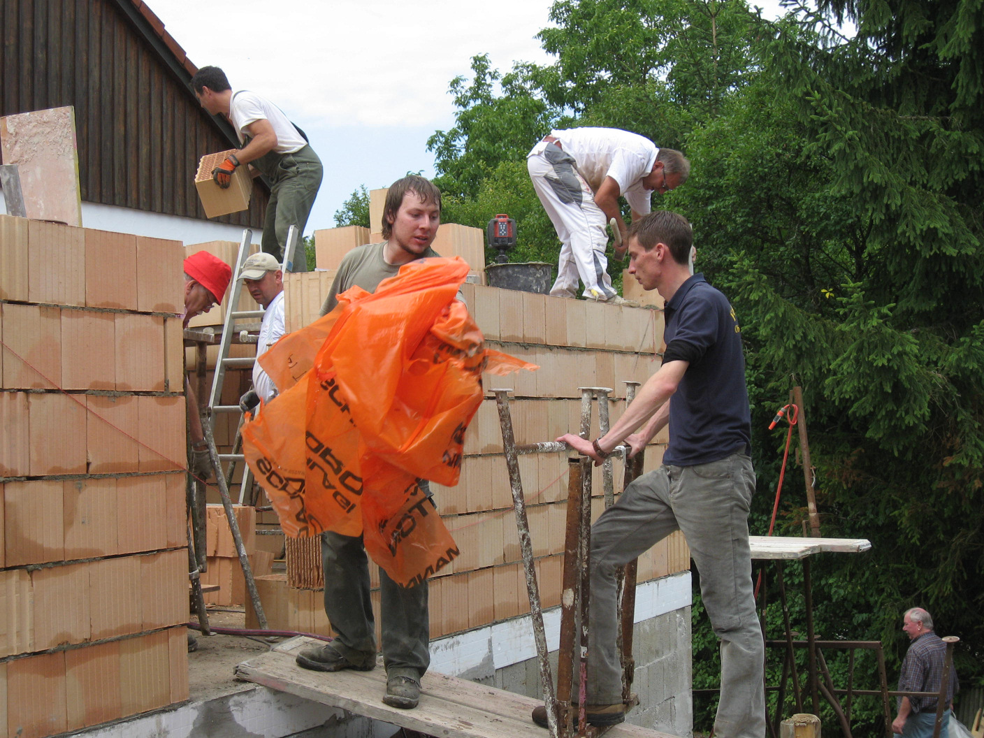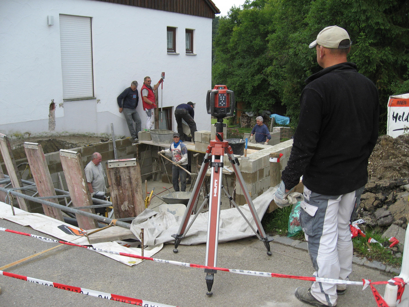 Kaum sind die Hohlblocksteine aufeinander getürmt,