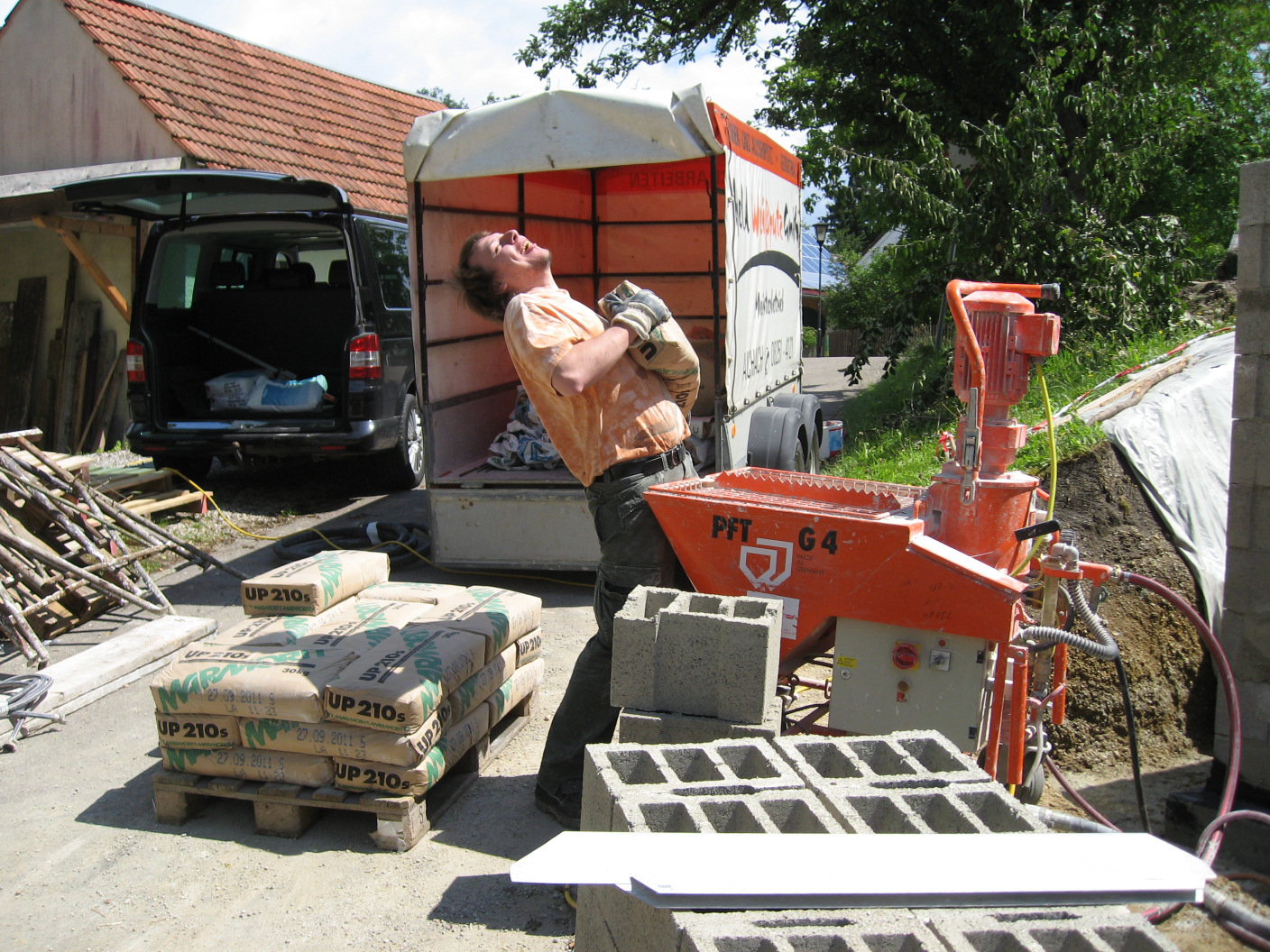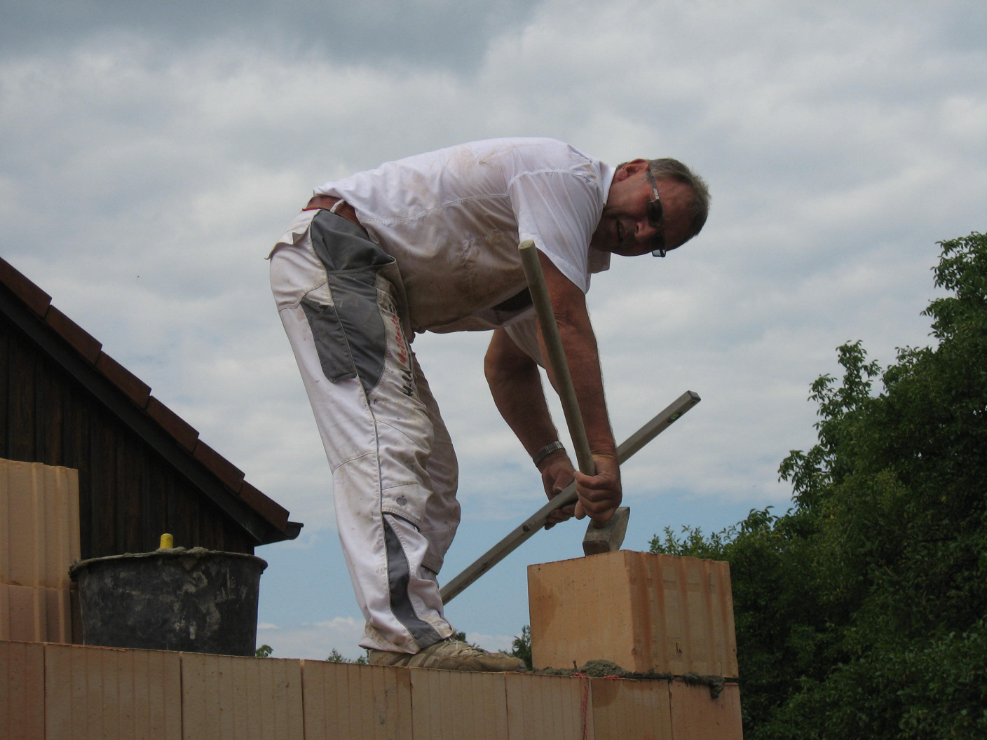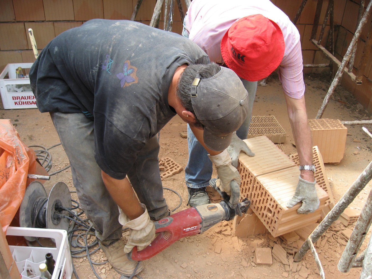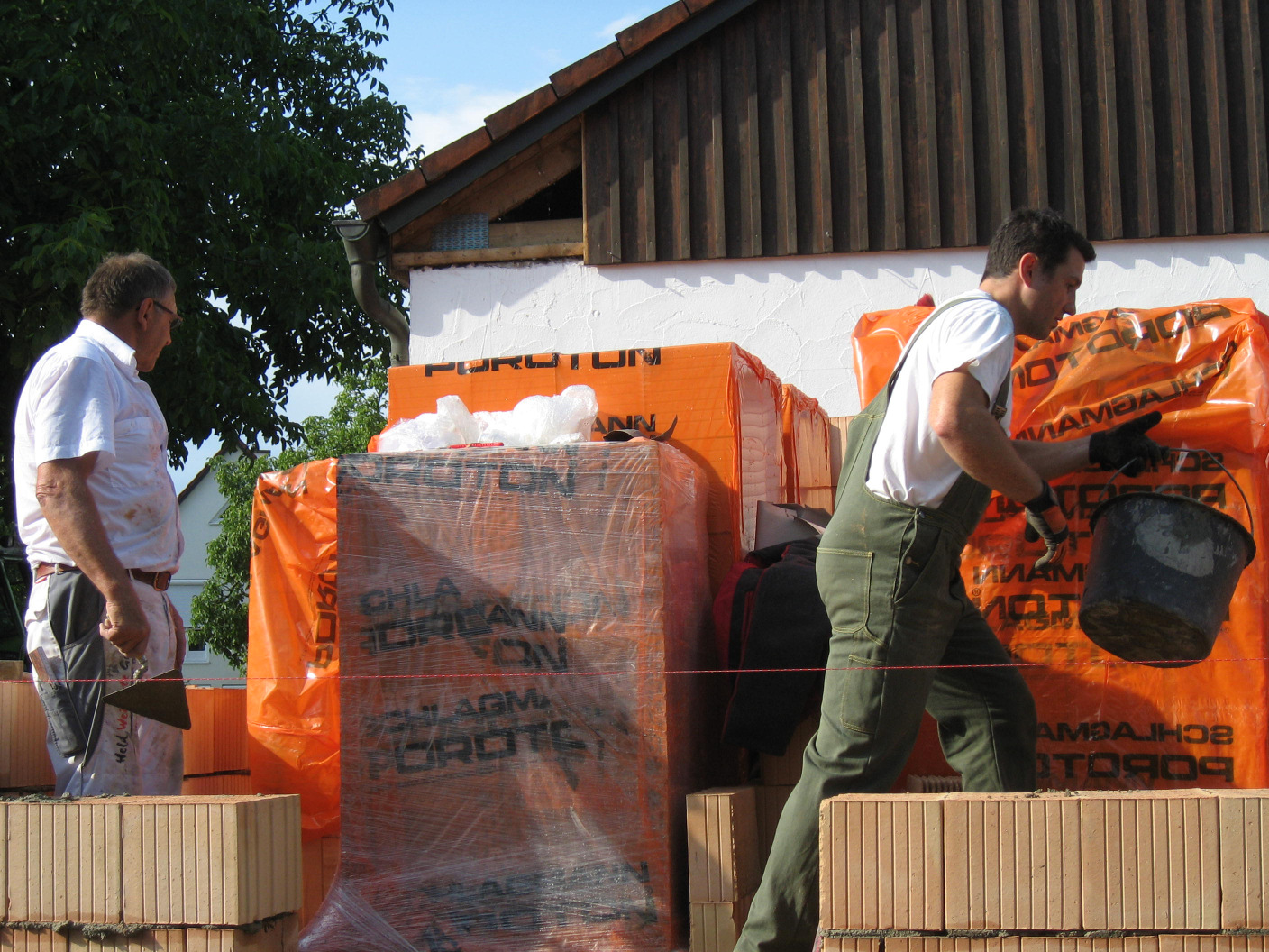Kaum sind die Hohlblocksteine aufeinander getürmt,