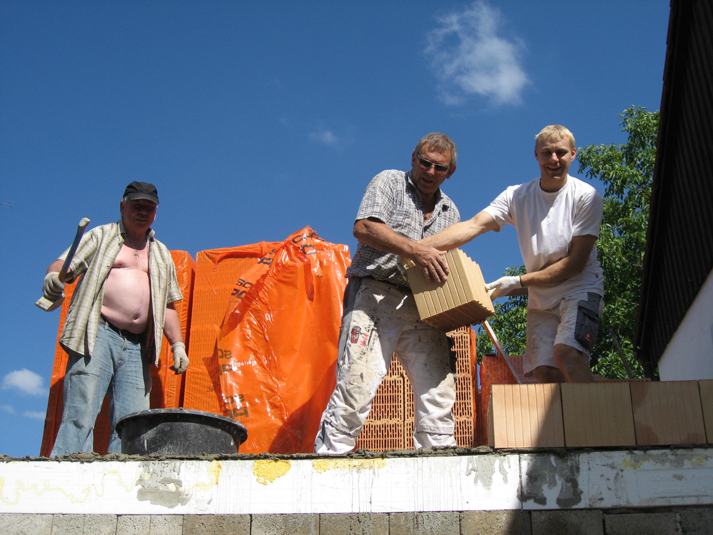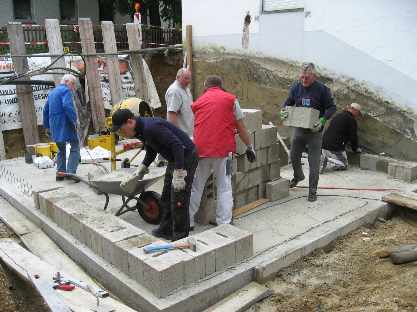 Im Keller fällt der Startschuß und schon wird drauf los gemauert.