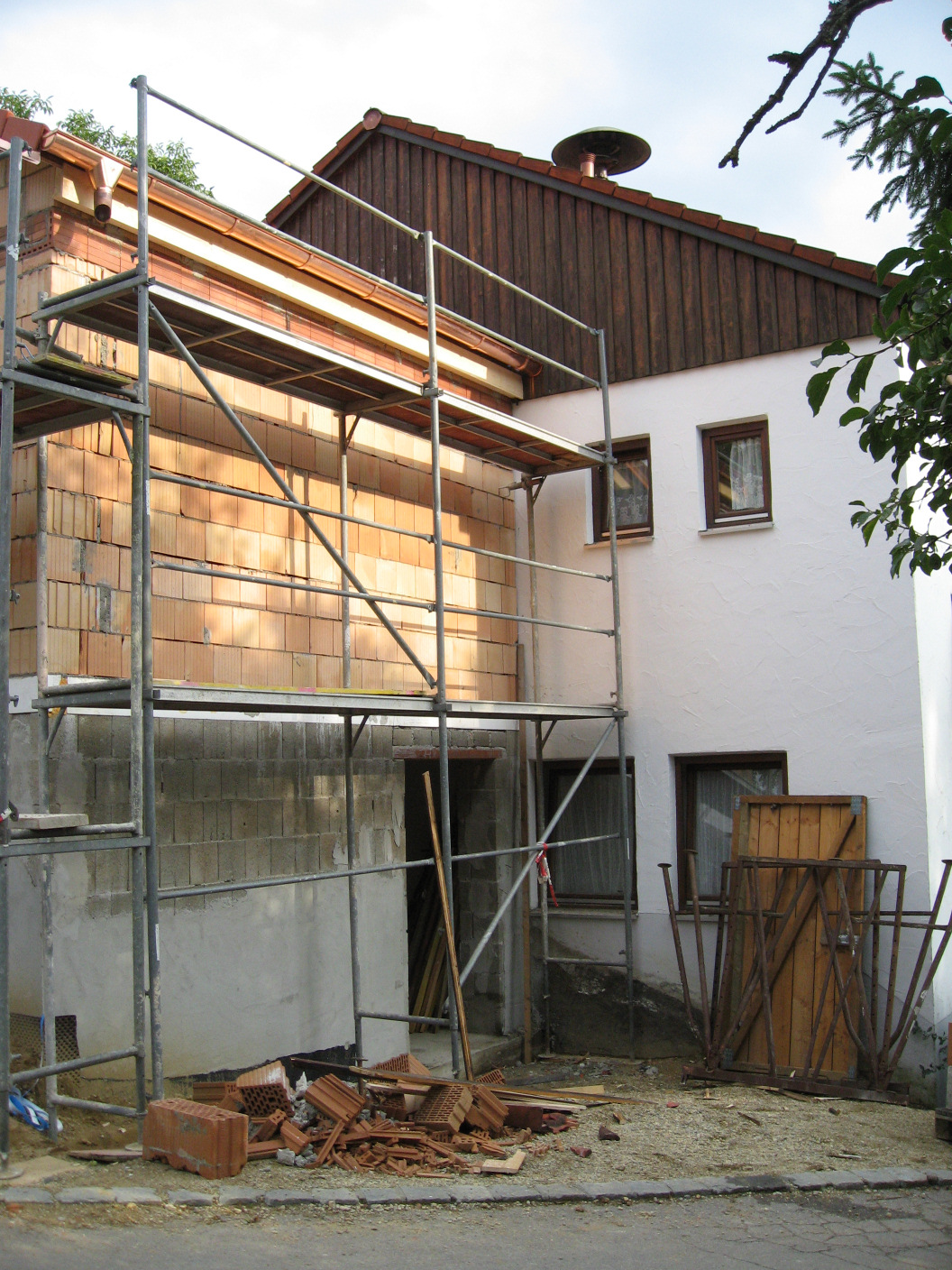 Die Dorfgemeinschaft erweitert ihr Gemeinschaftshaus, um einen Anbau auf der Nordseite. Damit werden zwei zusätzliche Kellerräume im Erdgeschoss und im oberen Stock Raum, für eine Umkleidemöglichkeit der Schützen oder den Weinfestausschank, gewonnen.