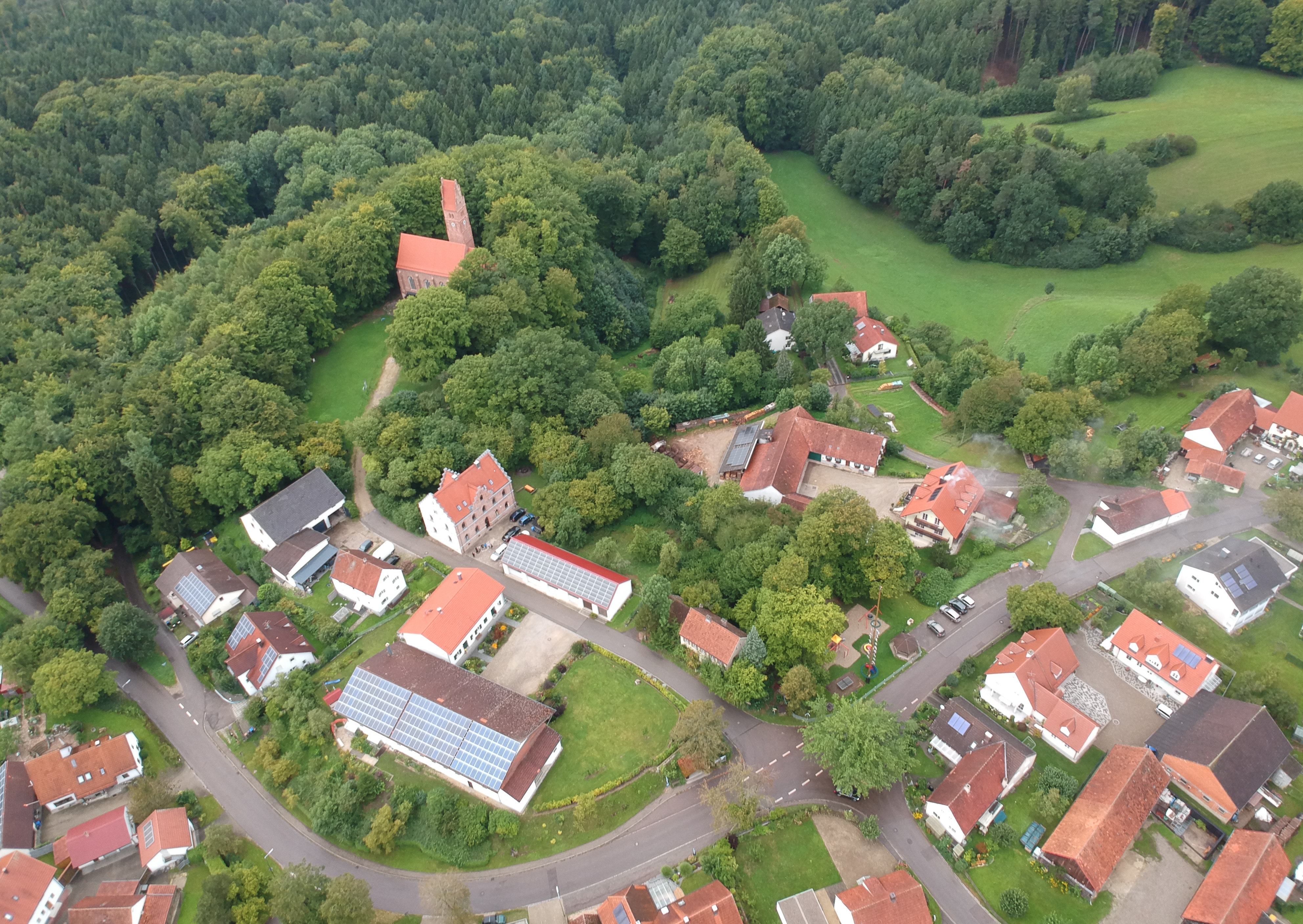 links: das Nationaldenkmal, rechts oben: Bauernhaus (Hofstelle Regau), rechts unten: Gedenkstein am Burgplatz